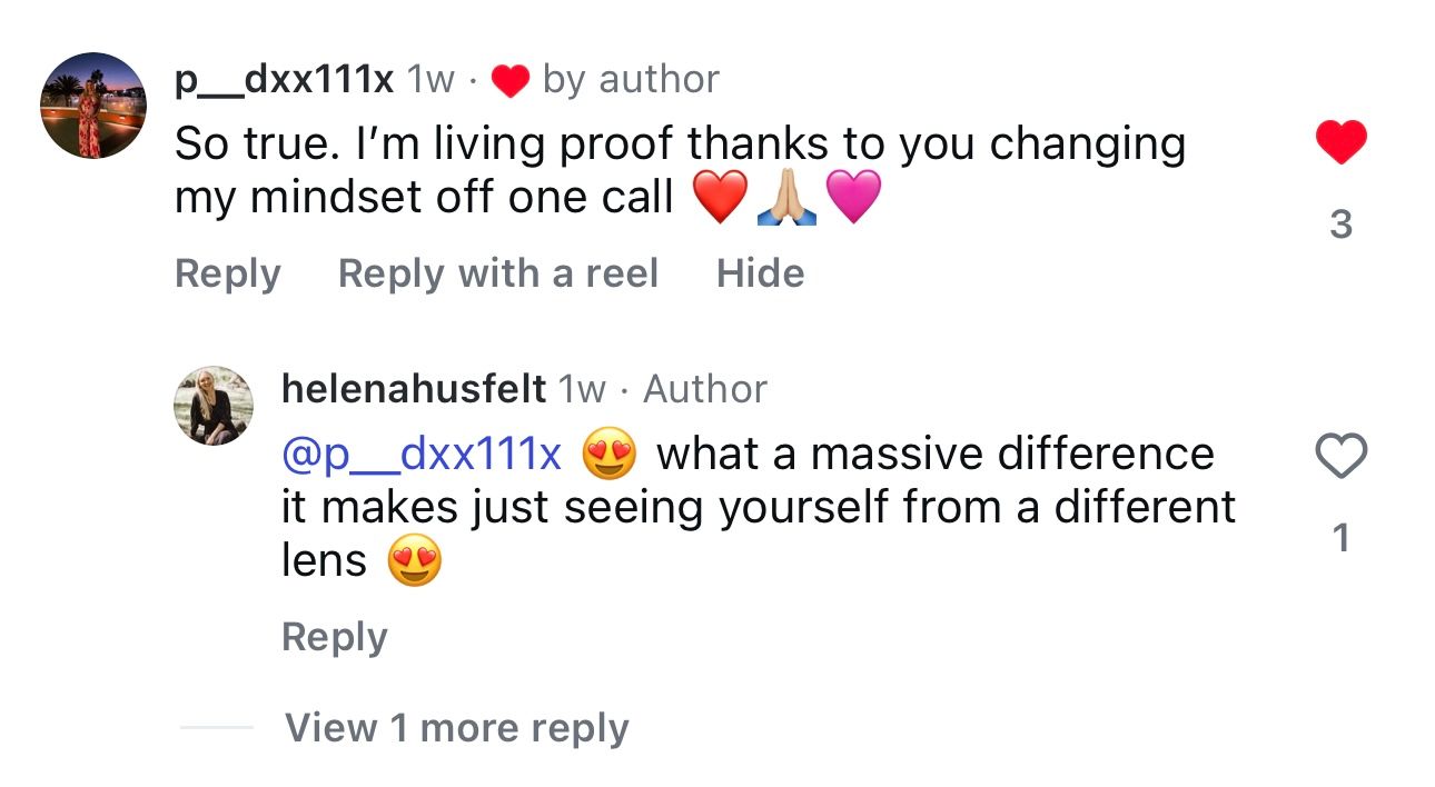 One moment of clarity in a single session (rather than the 16months of trying) of applying my course changed her entire life.